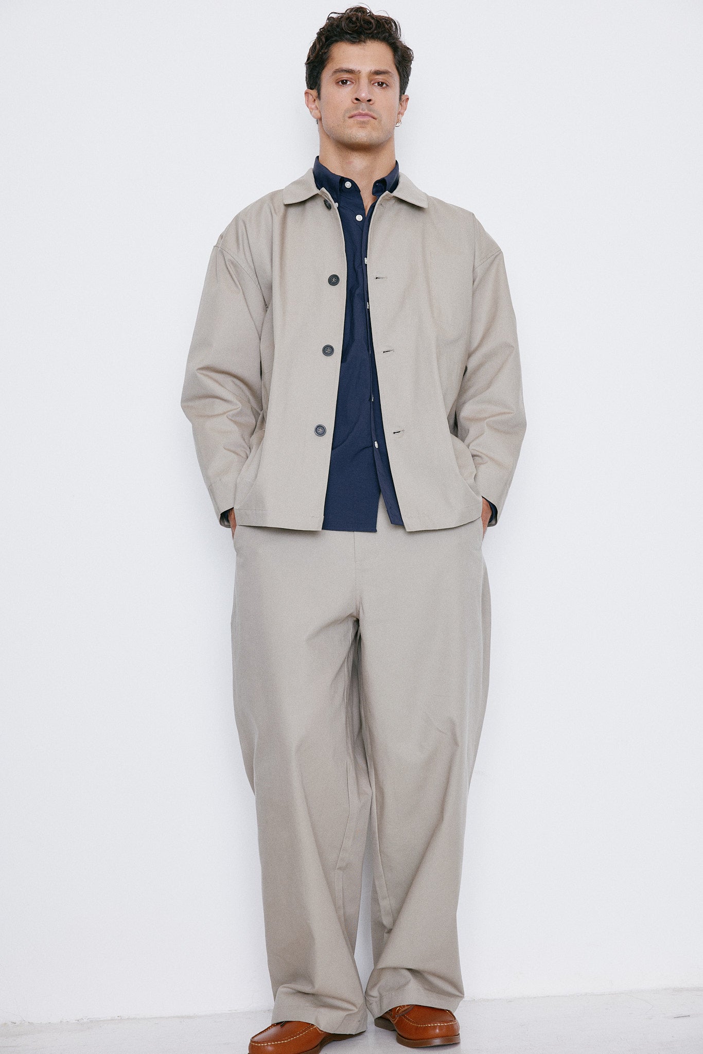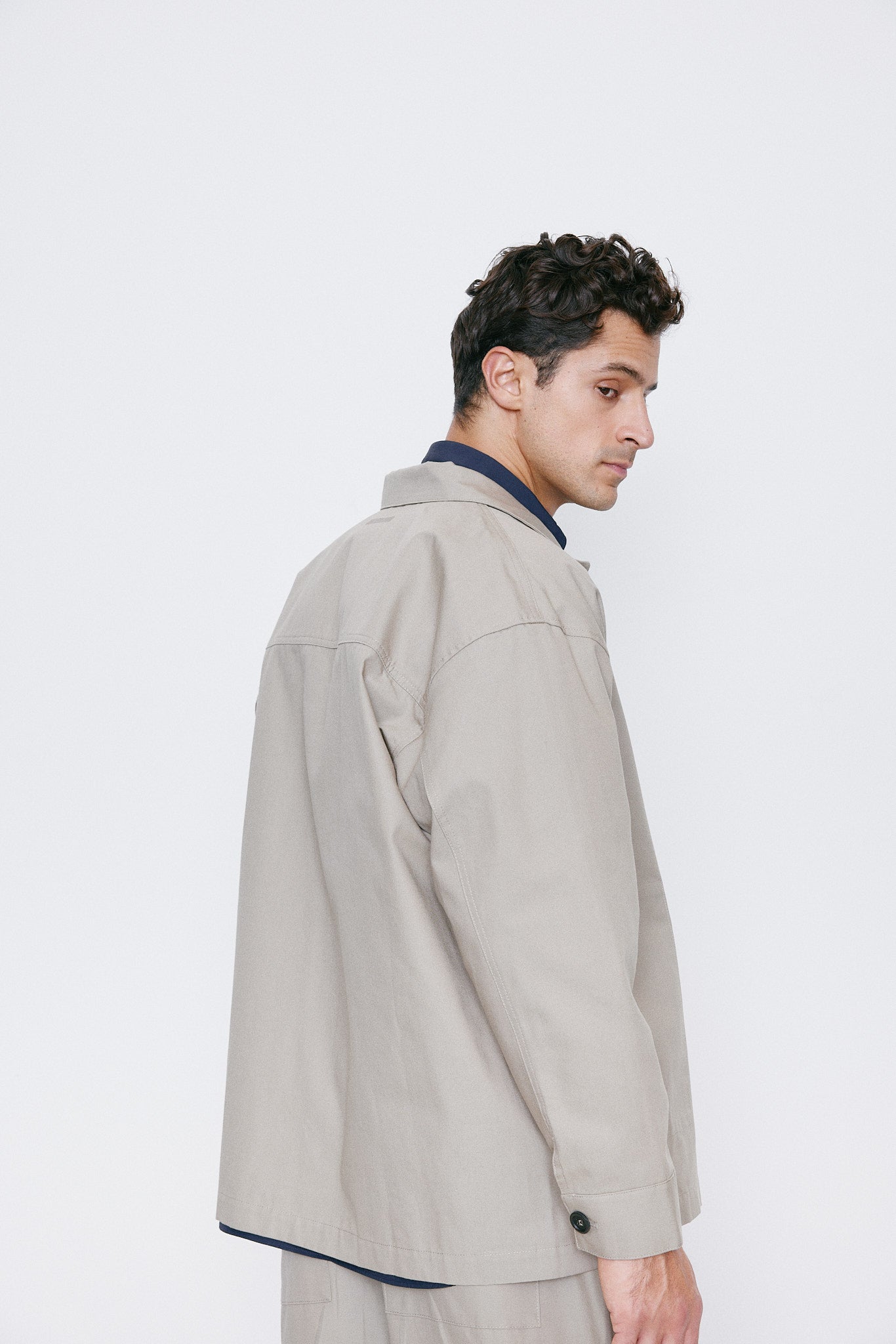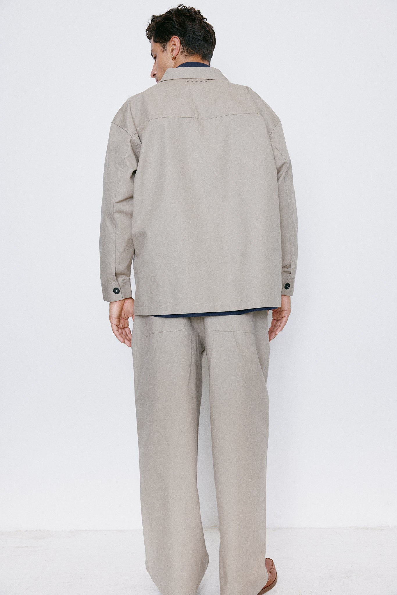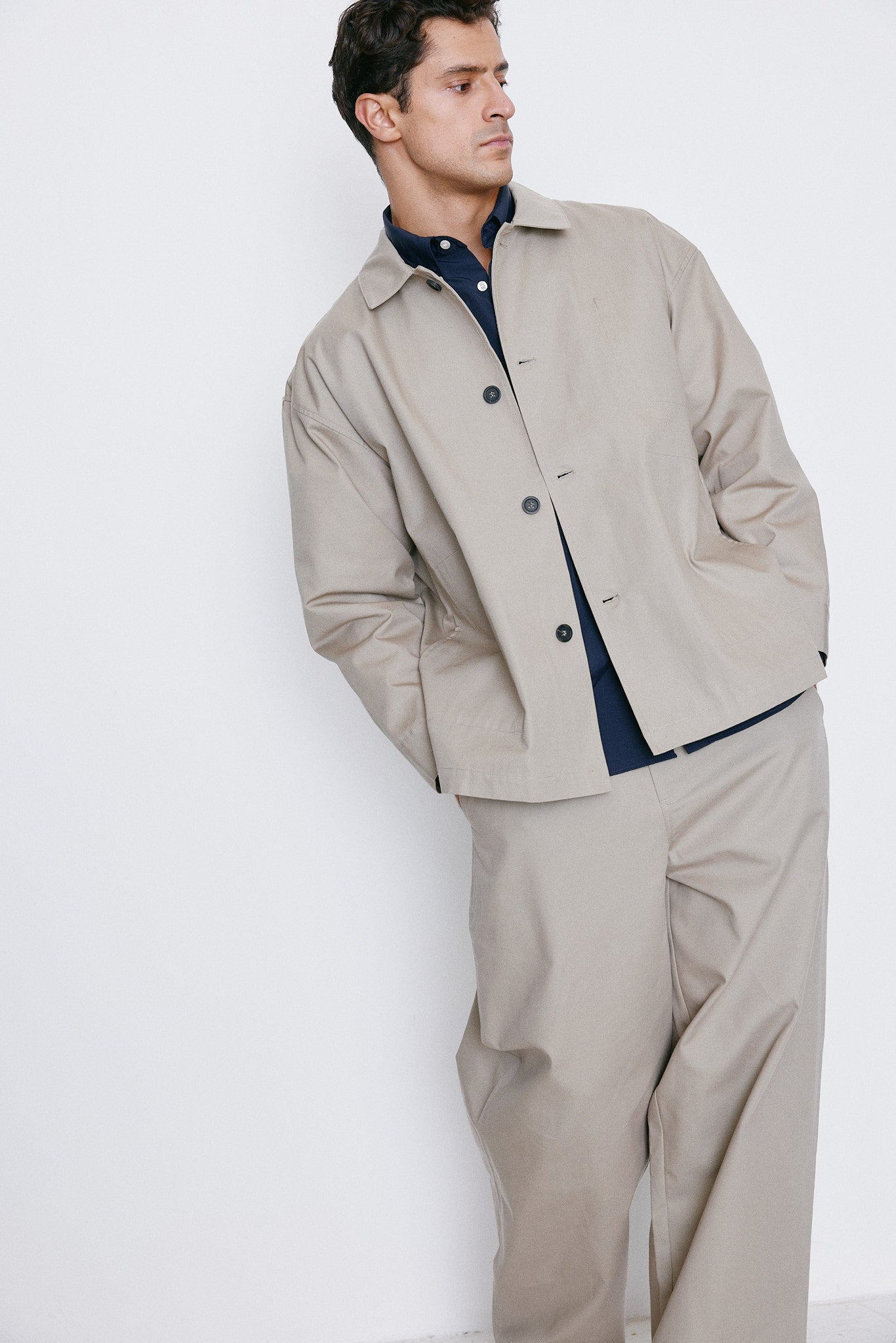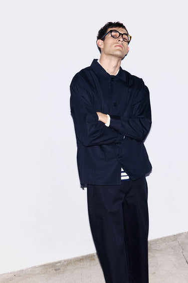 Made with an Italian premium fabric, the oversized work jacket is detailed designed to look sharp with almost everything, from the clean tailor pants to your go-to tech smart pants.