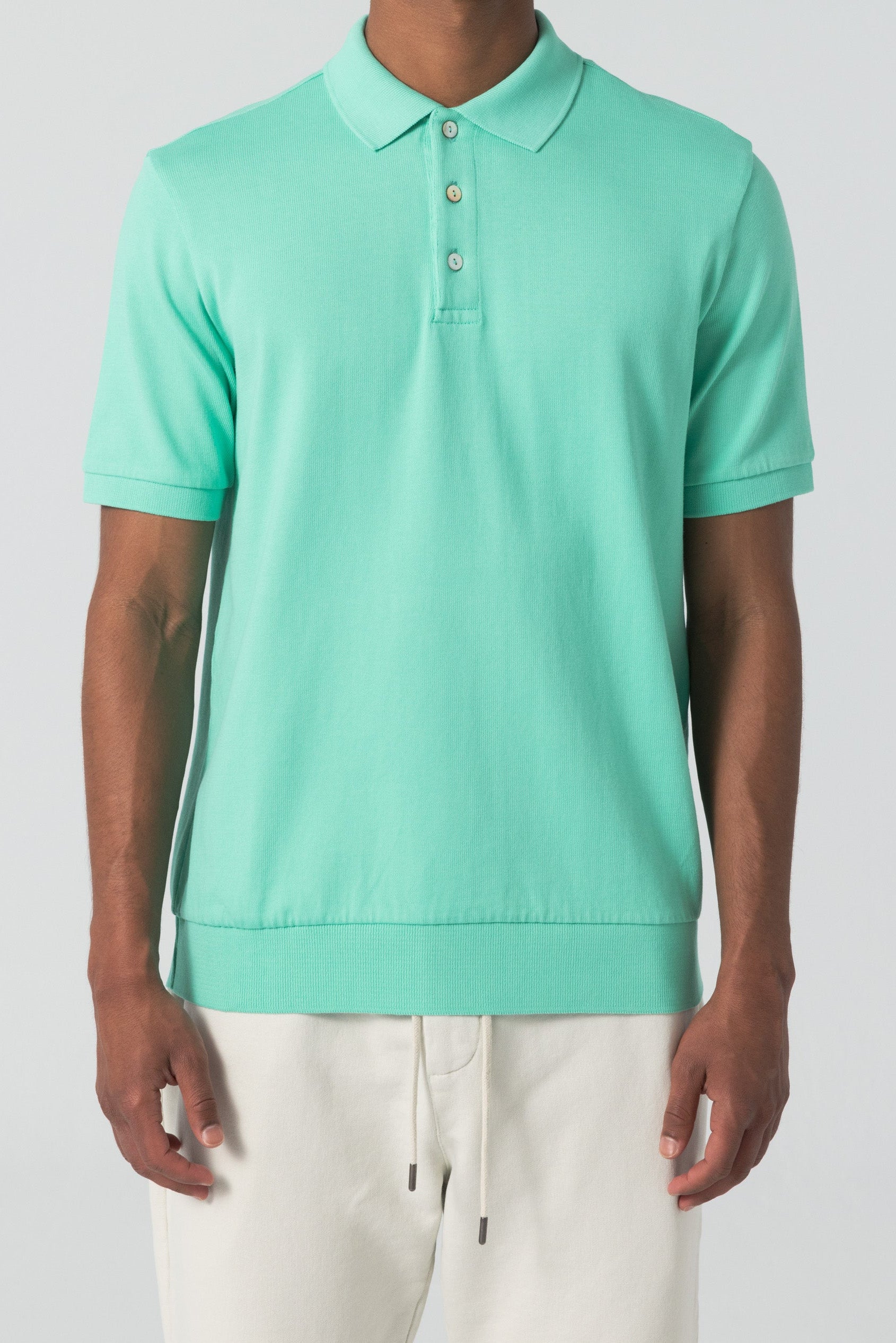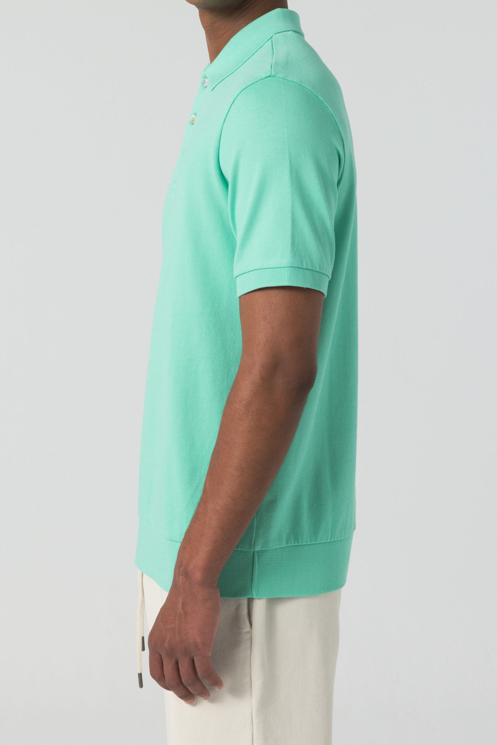 This isn’t your classic polo knit. Crafted from a compact organic cotton jersey, the fabric offers a crisp, structured feel with just enough give. It holds its shape with quiet confidence, polished, breathable, and unapologetically refined. The smooth surface and precise drape elevate it from casual staple to statement essential.